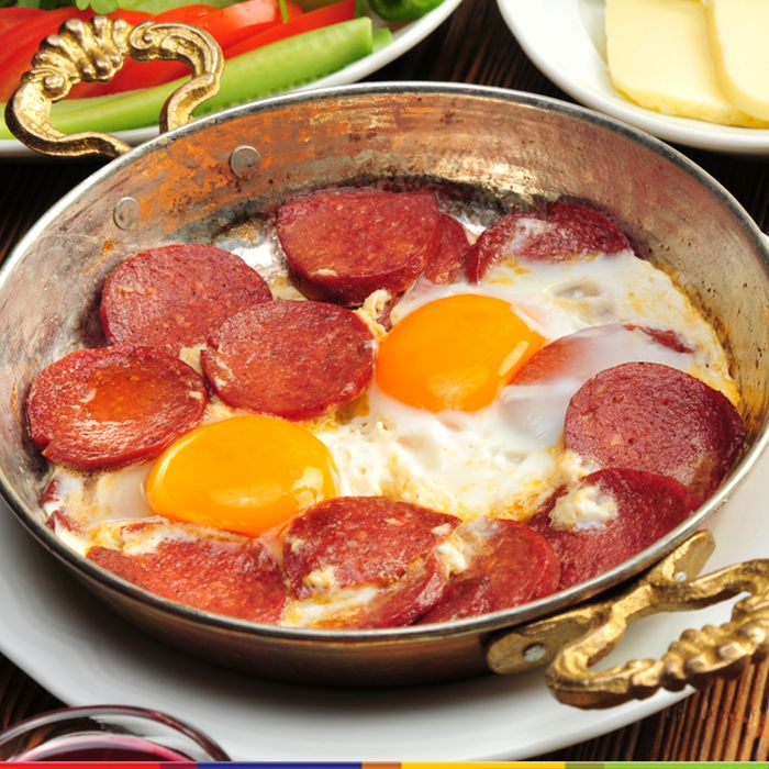 Reçel Çeşitleri, 2 Çeşit Peynir, Mevsim Yeşillikleri, Domates, Salatalık, Bal, Sahanda Yumurta, Patates Kızartması, Sınırsız Çay.